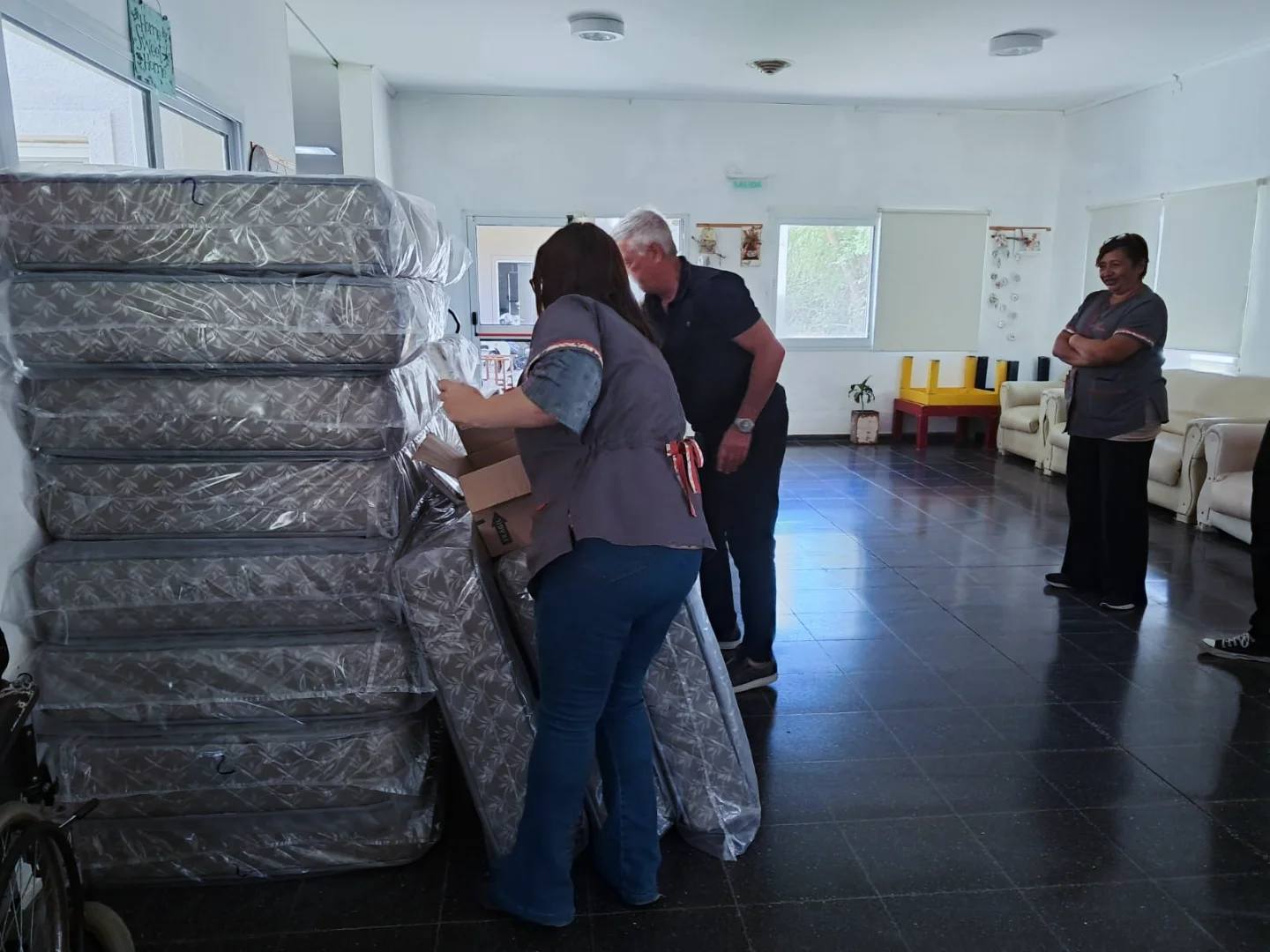 Esta semana, integrantes de Fundación Cargill realizaron la entrega de 11 colchones y 11 cubre colchones impermeables al secretario de Salud, Jorge Gayoso, y a la directora del Hogar Huellas, Alba Petrini.
