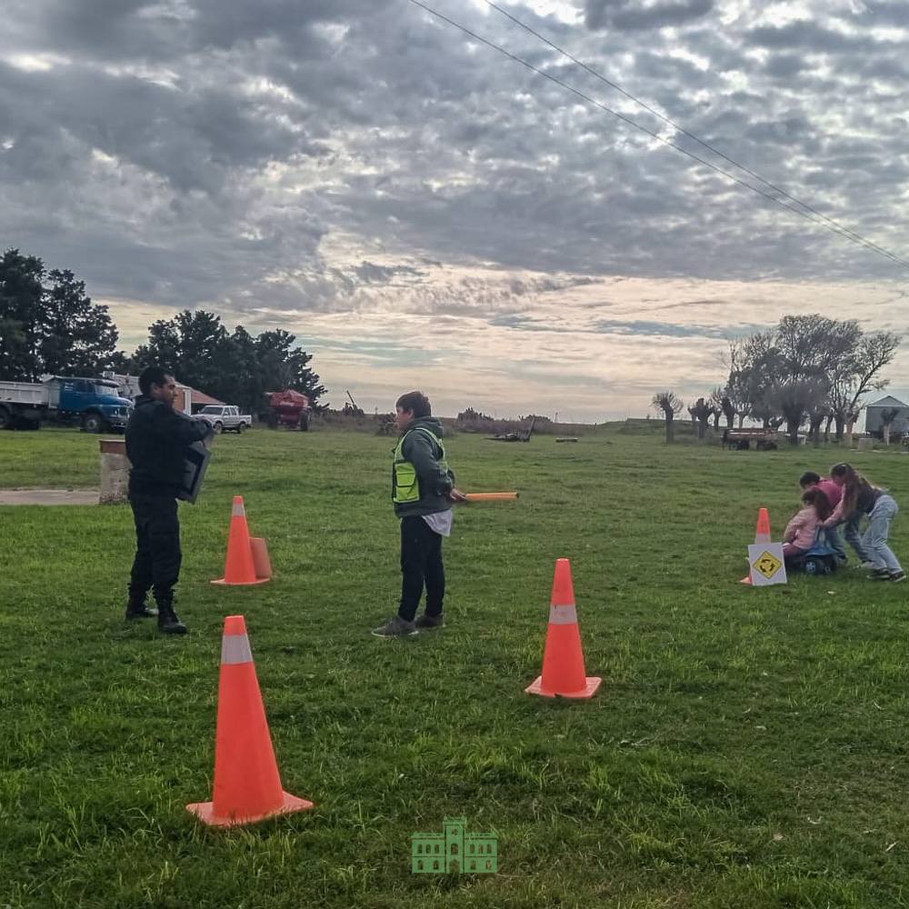 Agentes de la Guardia Urbana Municipal visitaron la Escuela Primaria N°18 de Colonia Viñas para brindar una charla sobre seguridad y normas de tránsito.