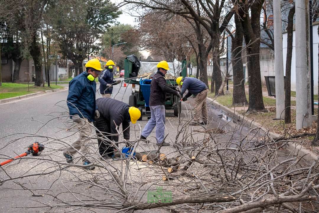 La Dirección de Espacios Verdes se encuentra llevando a cabo tareas de poda correctiva en calle A. Dhiel de la ciudad de América.