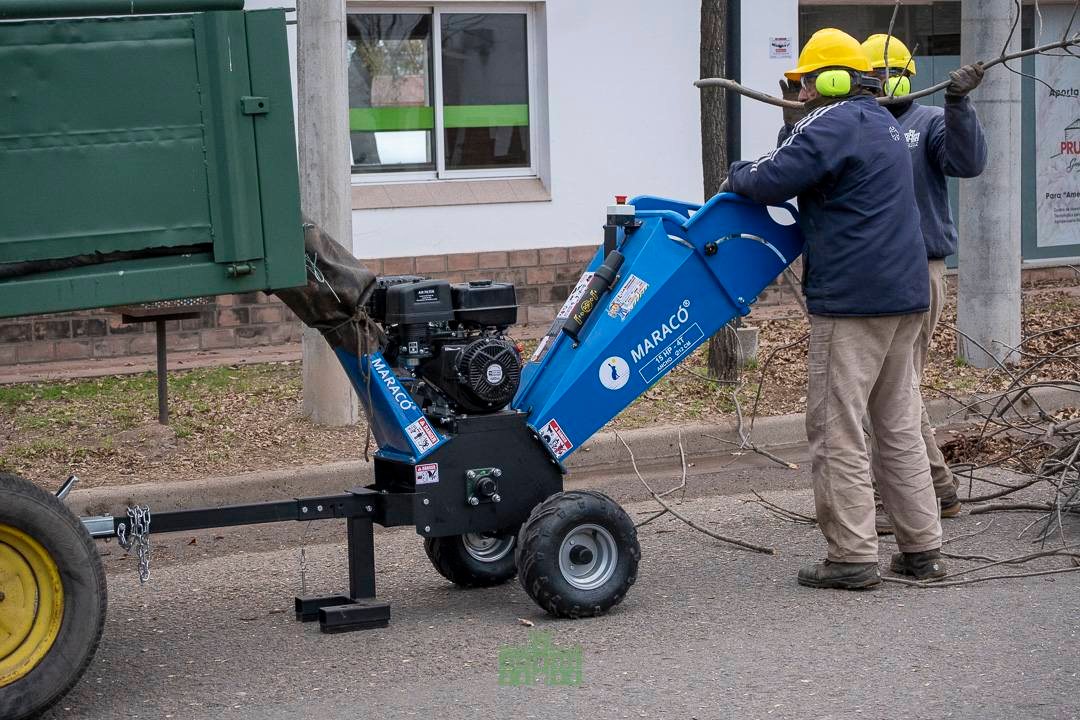 Como parte de esta intervención, se incorporó una nueva máquina chipeadora marca Maraco, que permitirá optimizar la disposición final de ramas y restos de poda.