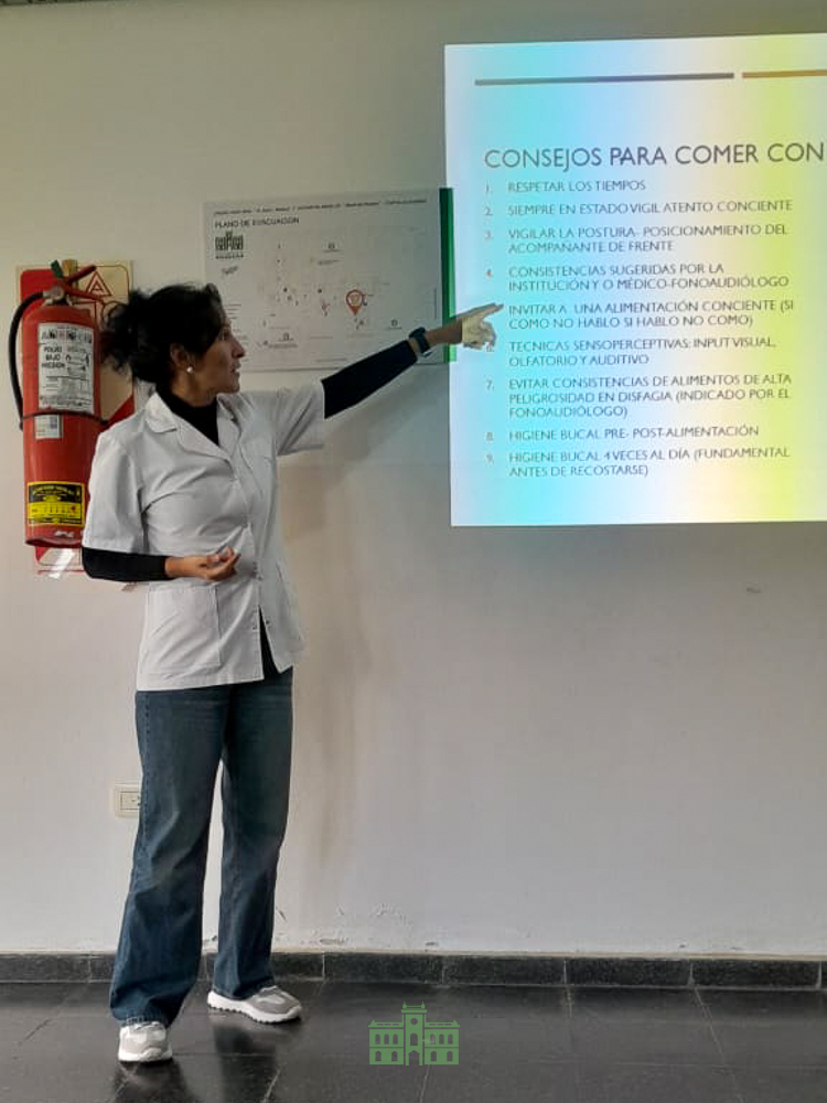 El miércoles se llevó a cabo en Fortín Olavarría una capacitación sobre disfagia orofaríngea y cuidados en la alimentación del adulto mayor, dictada por la Lic. en Fonoaudiología Marcela Roselli y la Lic. en Nutrición Marcela García.