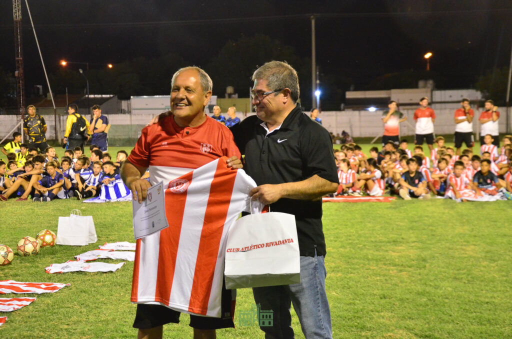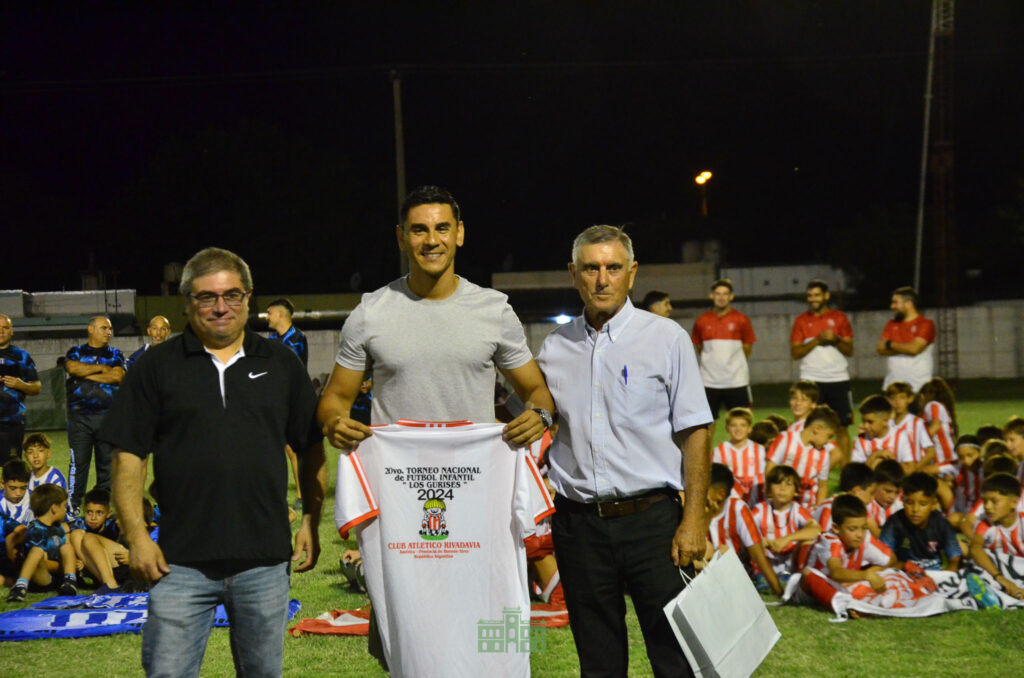 El viernes por la noche el intendente Juanci Martínez, junto al secretario de Gobierno, Sebastián Hernández, el director de Deportes, Edgardo Martínez, el futbolista rivadaviense y padrino del Torneo Oscar Ustari, participaron del Acto Apertura de la 20° Edición del Torneo de Fútbol Infantil «Los Gurises», organizado por el Club Atlético Rivadavia, representado por su presidente Daniel Luna y Titi Chiattellino.