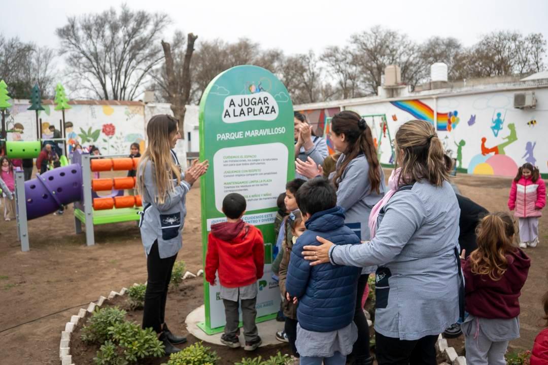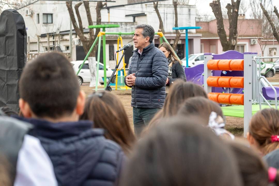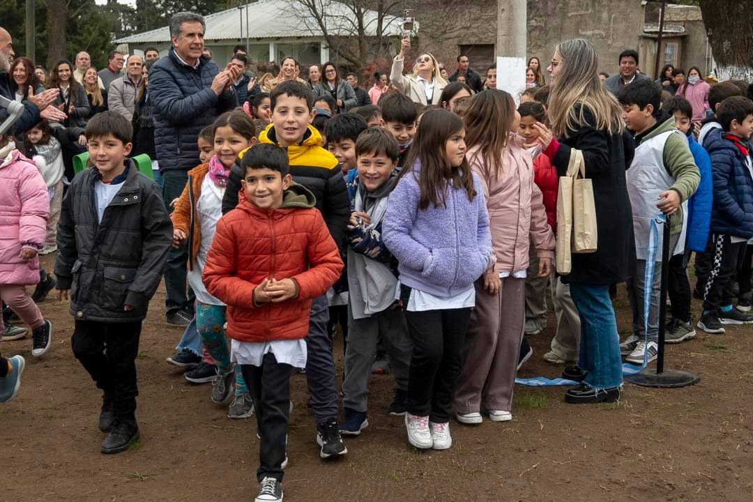 El acto contó con la participación del Intendente Juanci Martínez, la presidenta de la Fundación Banco Provincia, Micaela Ferraro, el Delegado Municipal, Héctor Raúl Echeverría, autoridades educativas, concejales, consejeros escolares, funcionarios municipales, alumnos y docentes del Jardín de Infantes N° 902 —quienes eligieron el nombre del parque— Escuela Primaria N°5 y vecinos de la localidad.