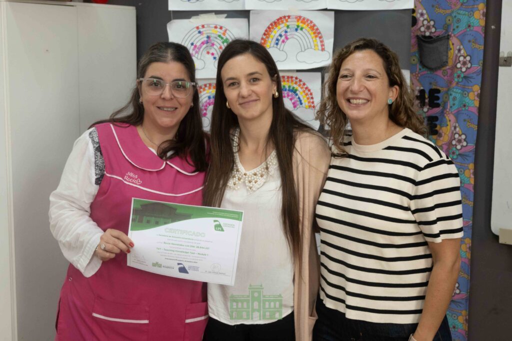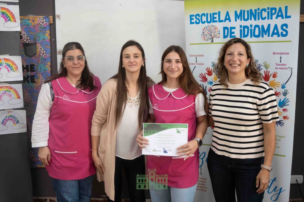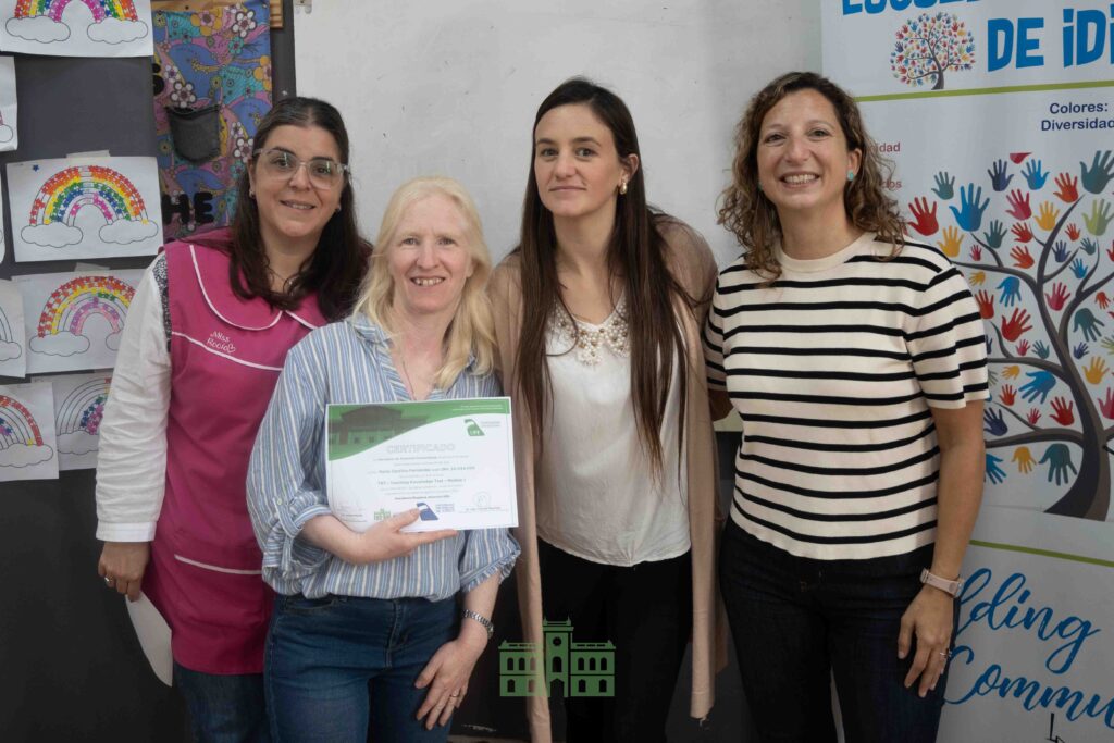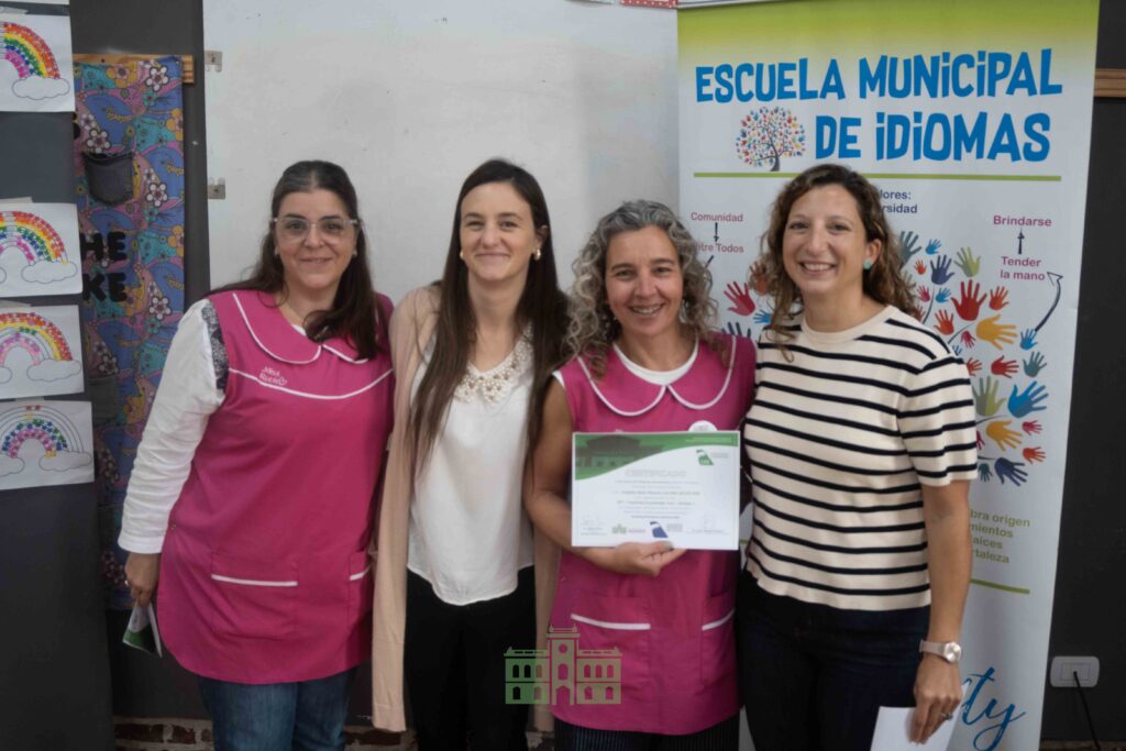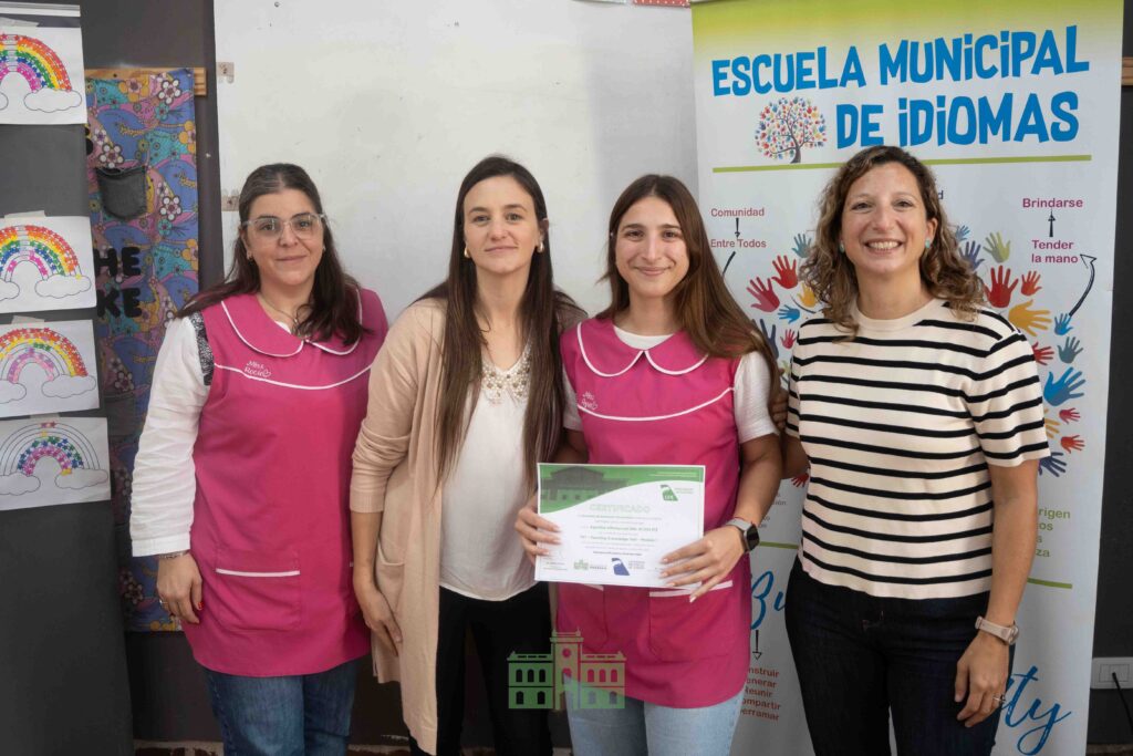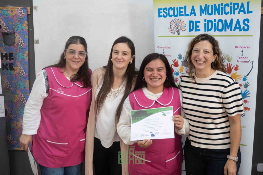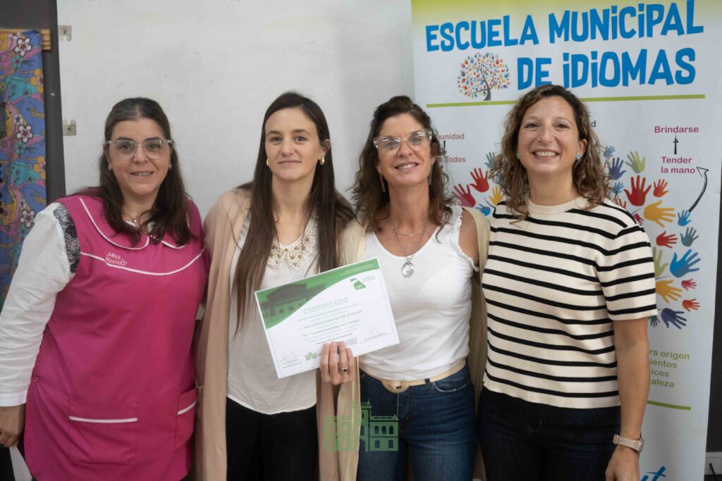 Durante la jornada, la directora de Educación, Mercedes García Duperou, y la coordinadora de la Escuela Municipal de Idiomas, Rocío Hernández, entregaron los certificados correspondientes al primer módulo a las profesoras que participaron de la capacitación.