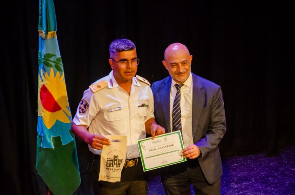 Por la Municipalidad de Rivadavia estuvo presente el Asesor Legal, Dr. Darío Culacciatti, quien entregó una distinción al Jefe Departamental Crio. Inspector Julio Cesar Silva; Jefe Comisaría Rivadavia Crio Diego Guinzani; Jefe de Comisaría de la Mujer y la Familia Rivadavia Subcrio. Daniela Minossi; Destacamento González Moreno Oficial principal Victor Nantón; Destacamento Fortín Olavarría Oficial Ayudante Emiliano Gonzalez; Destacamento Sansinena Oficial Ayudante César Lucero; Puesto de Vigilancia Roosevelt Subteniente Fabián Salazar.