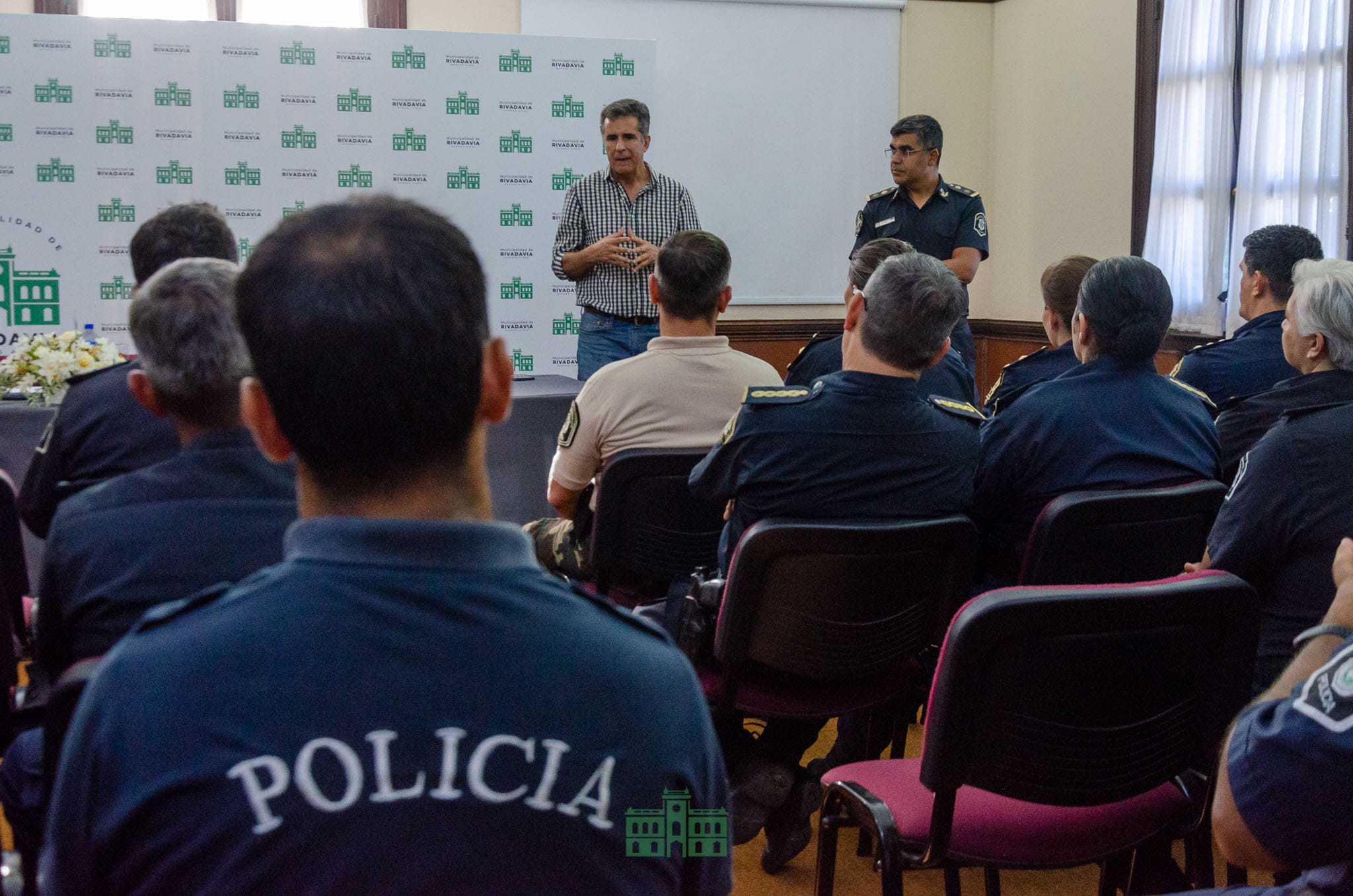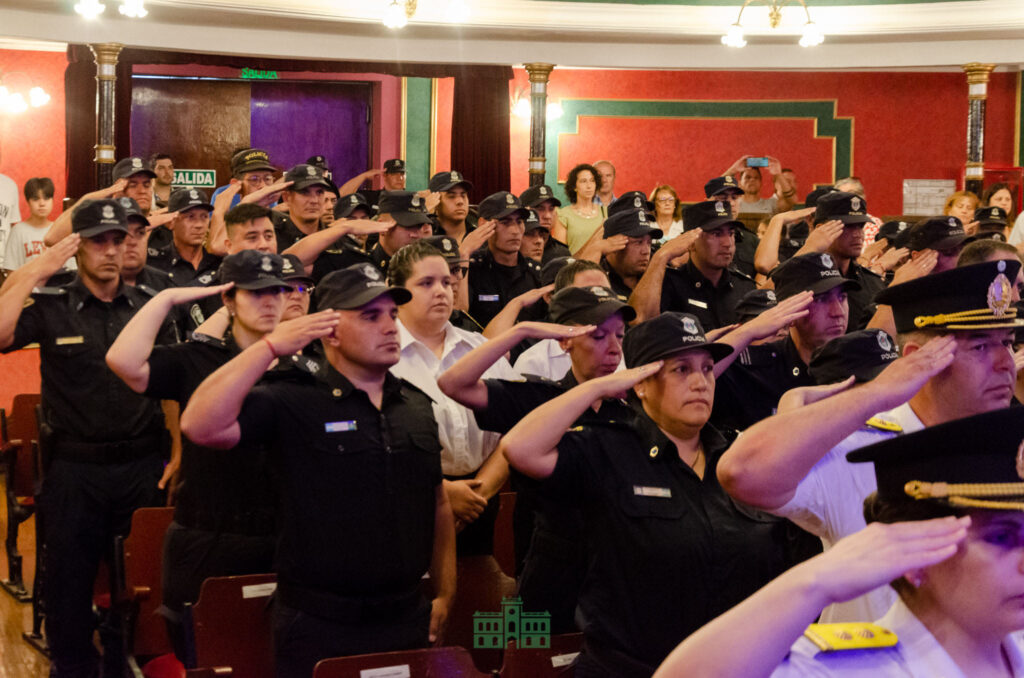 En el Salón Blanca Coyne, el intendente Municipal Juanci Martínez reconoció en un acto a todo el personal policial que se desempeña en el distrito de Rivadavia, destacando la labor y el compromiso con el cual desempeñan su tarea diaria.