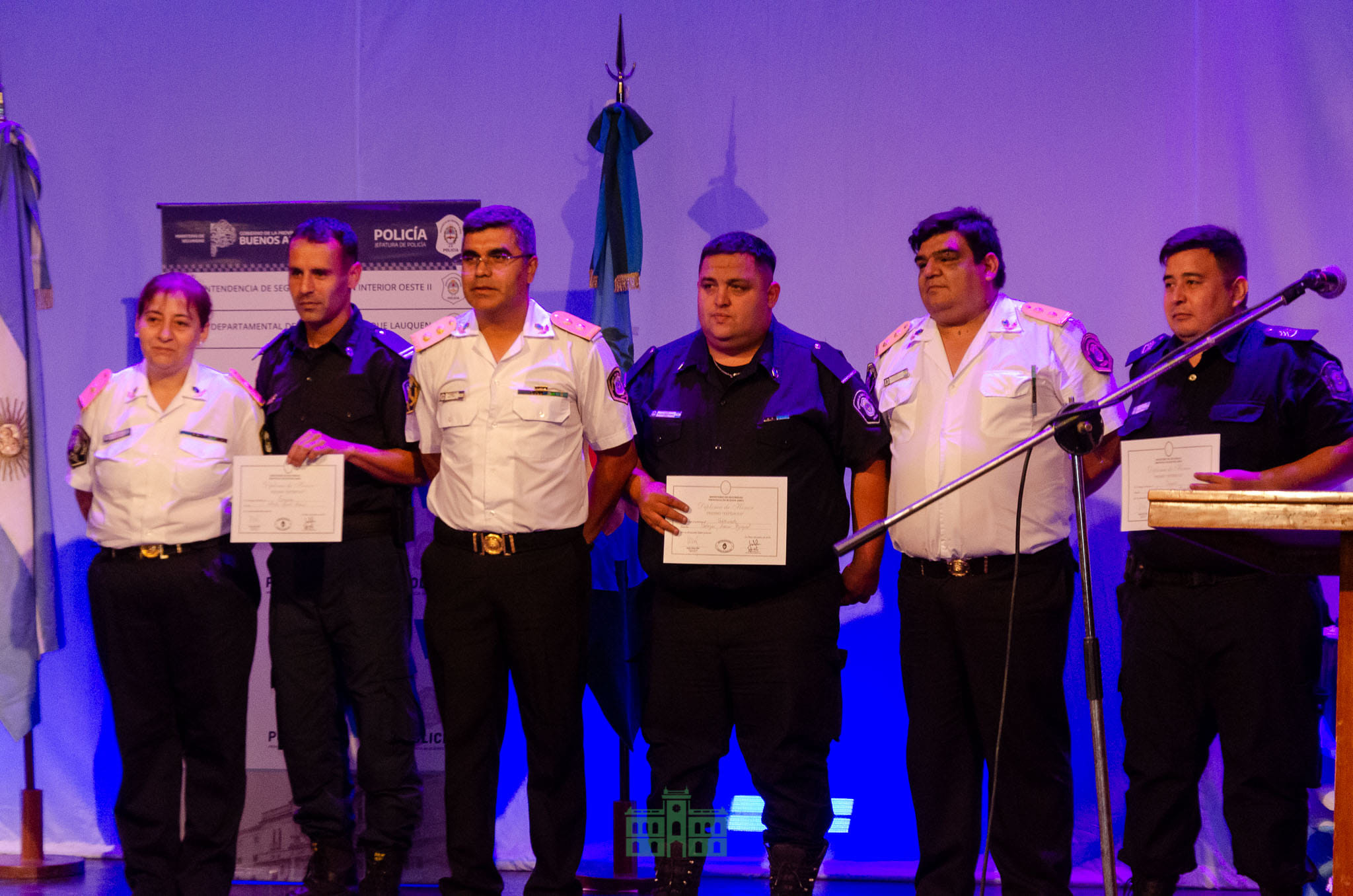 Los agentes que recibieron el reconocimiento fueron el Comisario Inspector Julio Cesar Silva, la Subcomisaria, Daniela Paola Minnozzi, Comisario Rubén Horacio Arias, oficial Ayudante, Cesar Roberto Lucero del Destacamento de Sansinena, oficial Ayudante Víctor Hugo Nanton del Destacamento de González Moreno y oficial Ayudante, Emiliano Facundo González del Destacamento de Fortín Olavarría.