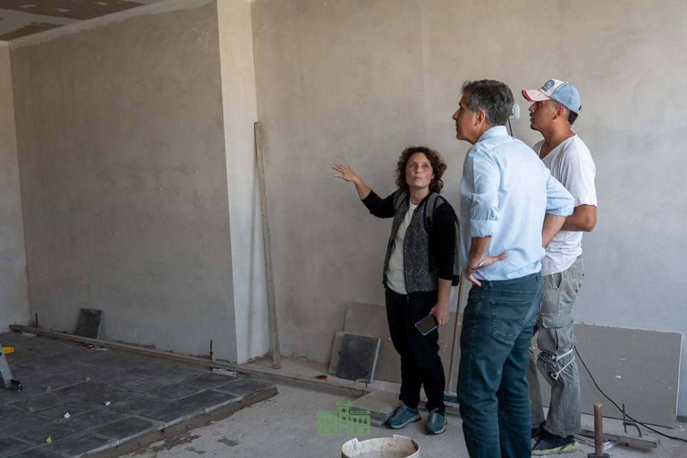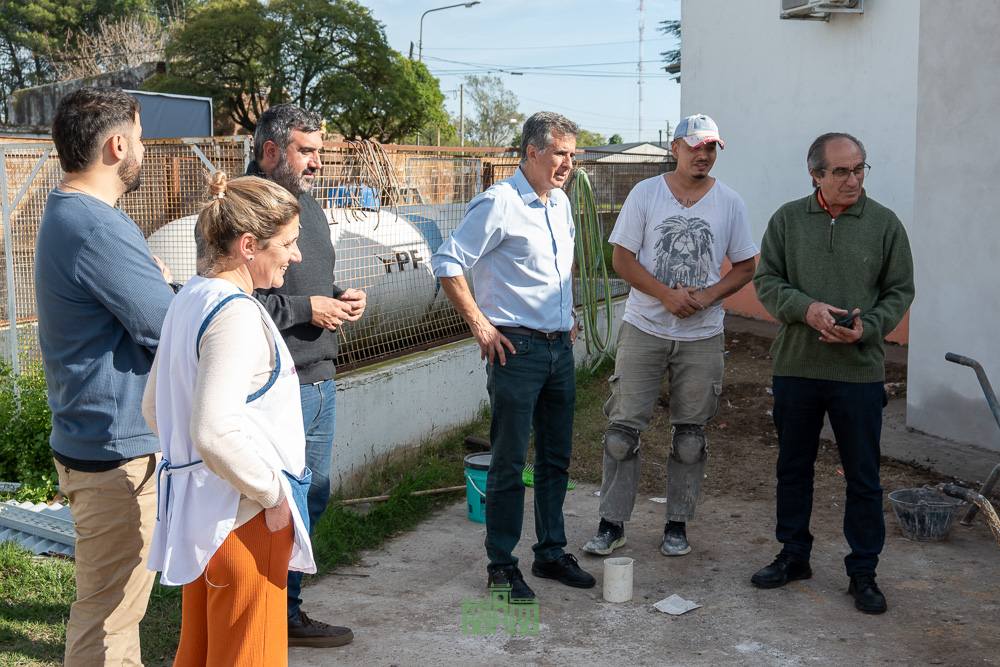 El intendente Juanci Martínez, acompañado por el delegado Héctor Raúl Echeverría, el secretario de Gobierno Sebastián Hernández, el consejero escolar Facundo Galarza y la arquitecta Micaela Hernández, recorrieron el avance de la obra de la nueva aula en la Escuela Primaria Nº 5, junto a su secretaria Paola Dematteis.