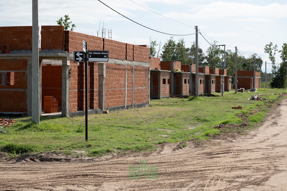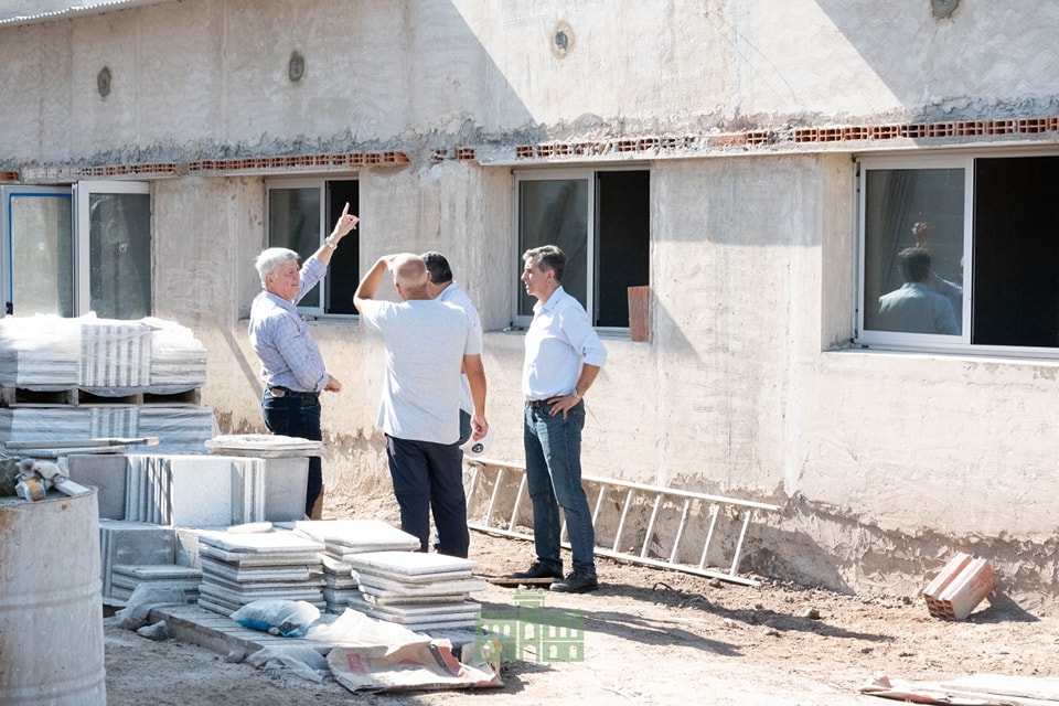 El intendente Juanci Martínez, junto al secretario de Gobierno Sebastián Hernández, el secretario de Obras Públicas y Hábitat, Arq. Juan Dufourc, y el secretario de Salud, Lic. Jorge Gayoso, recorrieron la obra del nuevo Centro de Salud en el Barrio Pos Vías y las 43 viviendas.