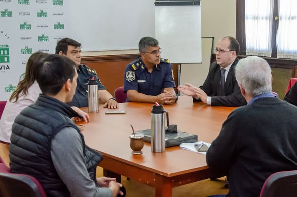 Participaron de la reunión, el secretario de Salud, Jorge Gayoso, el comisario inspector Julio Silva, la directora de Producción, Natalia Montoya, el jefe de Bromatología, Fermín Orloff, Segundo Jefe del Comando de Prevención Rural, Marcelo Poletti, la concejal, Josefina Pérez, el jefe de Comisaría, Ruben Arias y el Juez de Faltas, Alejandro Belfiori.