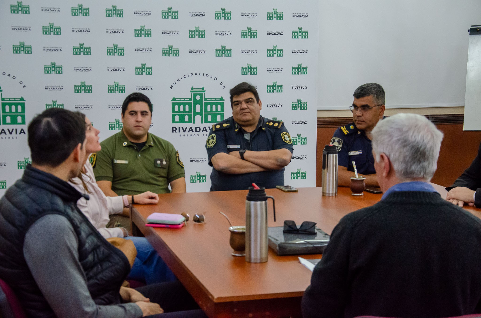 Participaron de la reunión, el secretario de Salud, Jorge Gayoso, el comisario inspector Julio Silva, la directora de Producción, Natalia Montoya, el jefe de Bromatología, Fermín Orloff, Segundo Jefe del Comando de Prevención Rural, Marcelo Poletti, la concejal, Josefina Pérez, el jefe de Comisaría, Ruben Arias y el Juez de Faltas, Alejandro Belfiori.