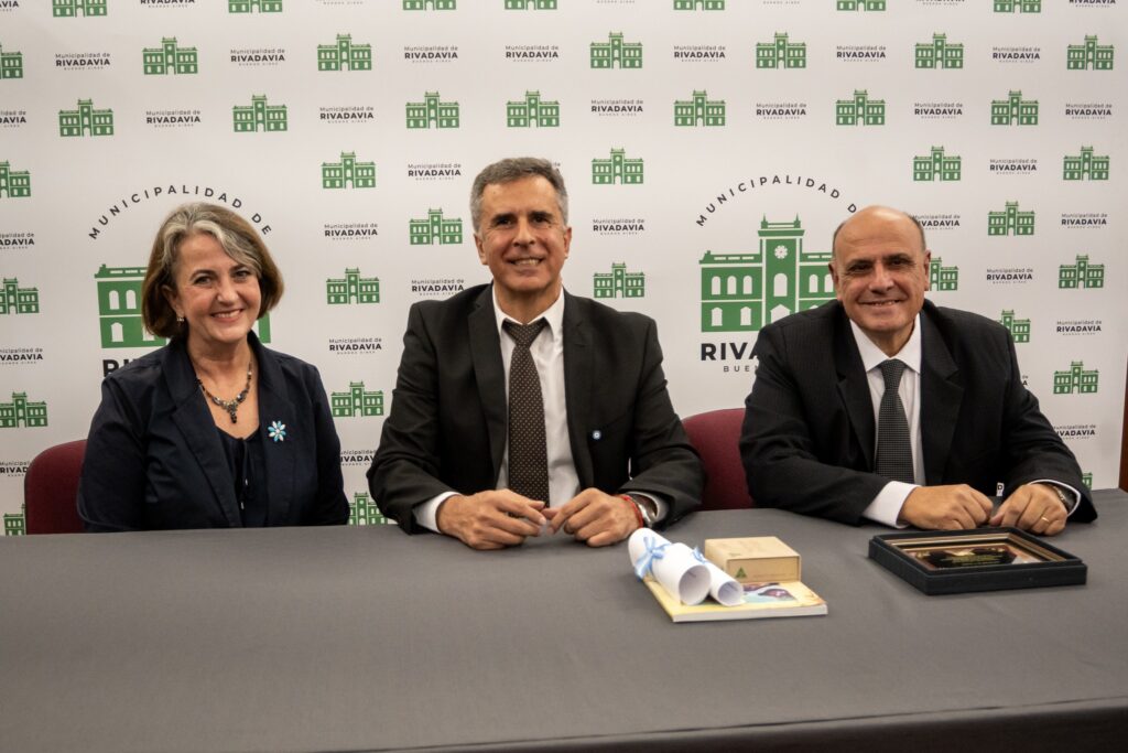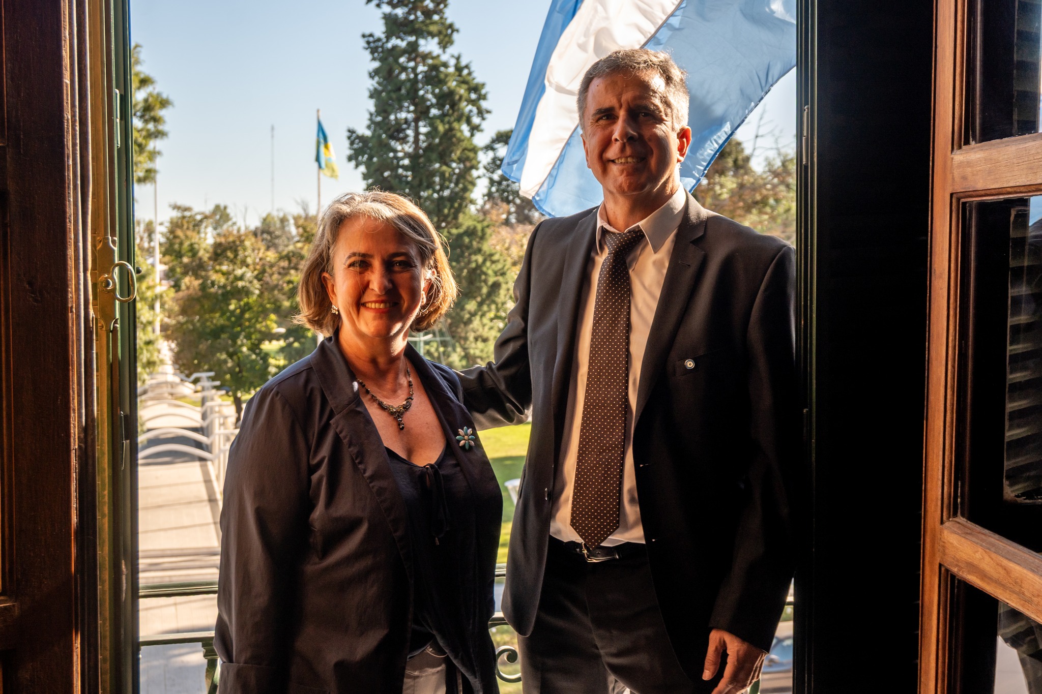 El intendente Juanci Martínez recibió a la Embajadora de Australia en Argentina, Sarah Roberts, junto al presidente del Honorable Concejo Deliberante, Héctor García, en el Salón Blanca Coyne del Palacio Municipal.