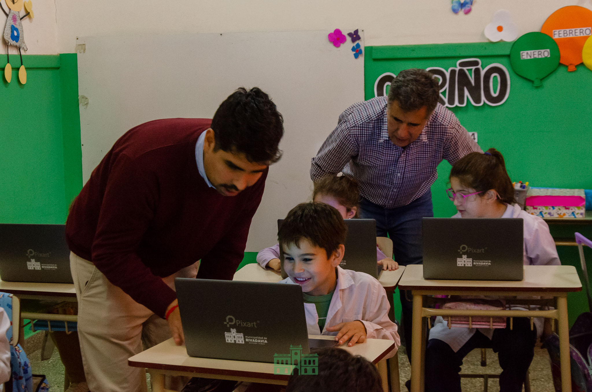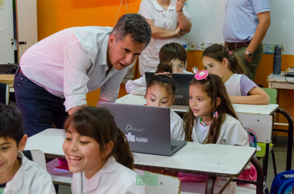 Durante la última semana el intendente Juanci Martínez, junto a parte de su equipo de Gobierno y autoridades educativas, continuaron con la entrega de las notebooks del nuevo programa municipal Rivadavia Transformación Digital, en las Escuelas Primarias de Rivadavia.
