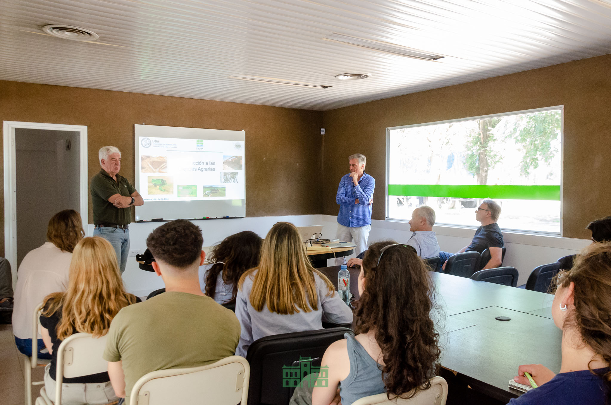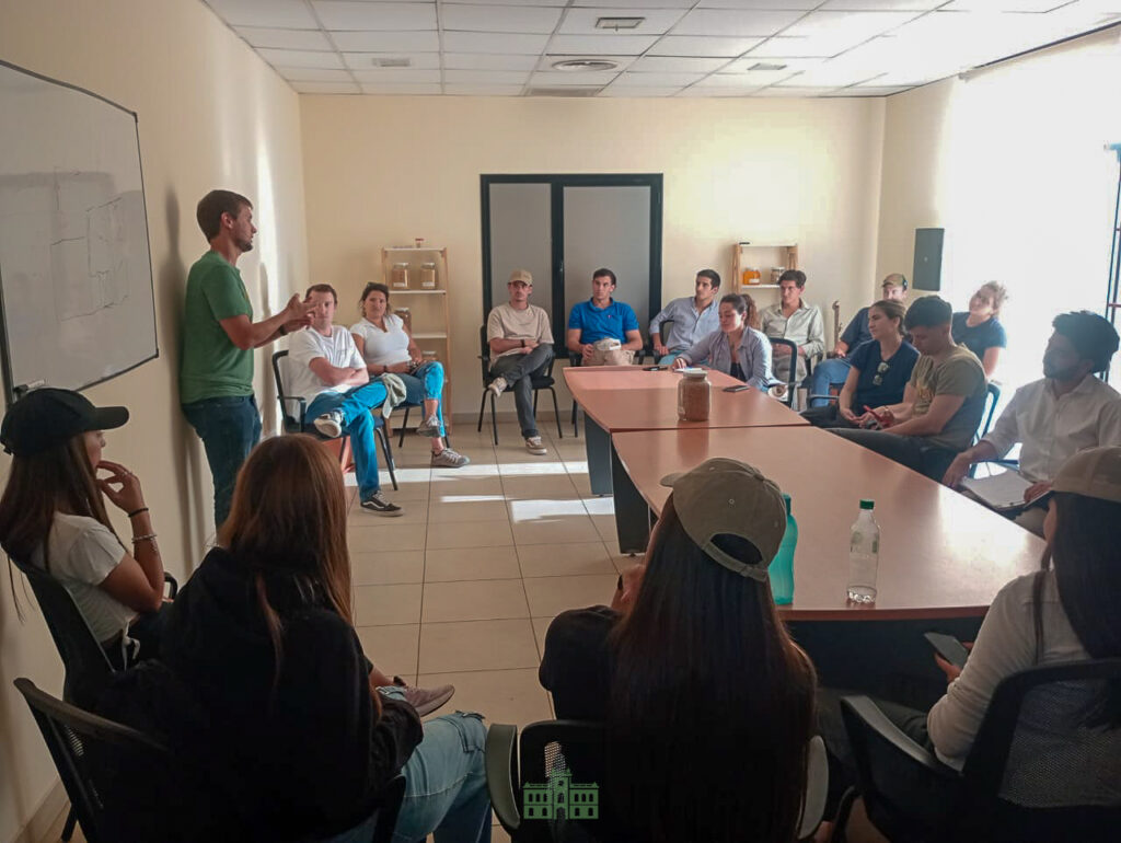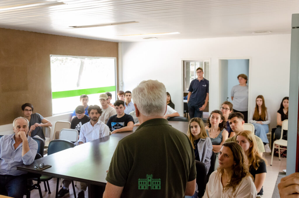 Durante la visita, los alumnos fueron recibidos en las instalaciones de América AgroInnova por la directora de Educación Municipal, Mercedes García Duperou, el titular del CES, Juan Cruz Tagliabue, el director del Centro de Investigación Agroinnova, Diego Rotili y el director de la carrera de Agronomía de UBA, Roberto Berech Arnold e integrantes del CEFER.
