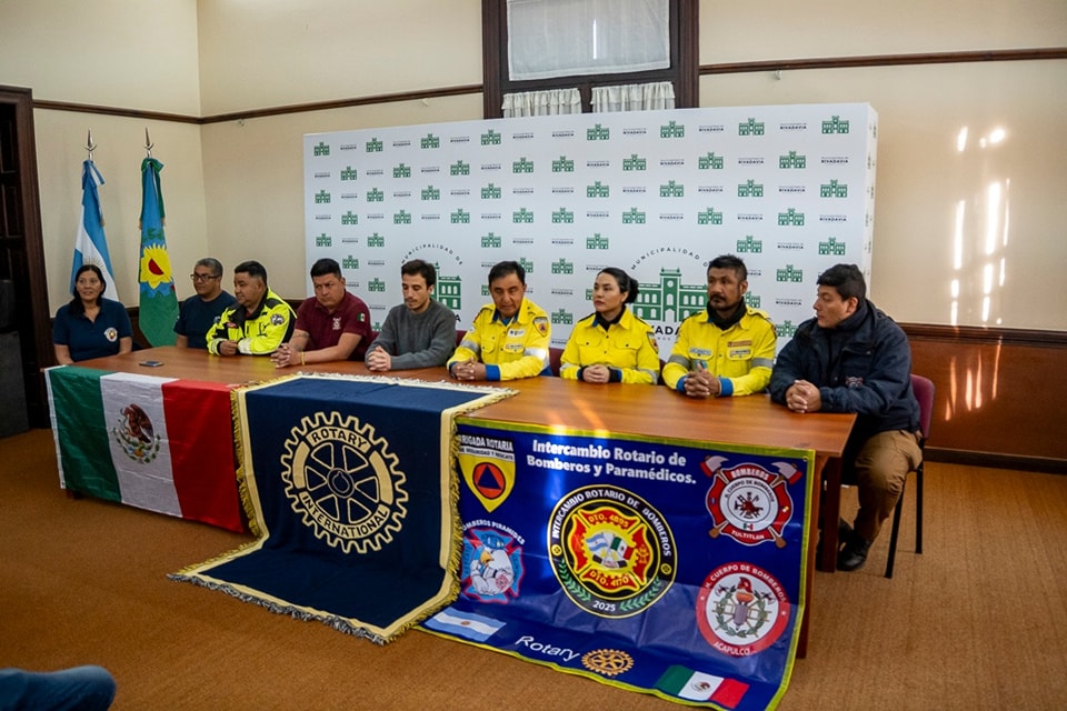 En el marco del «Programa de intercambio de profesionales», promovido por Rotary International, autoridades del Gobierno municipal encabezadas por el Secretario de Gobierno, Sebastián Hernández, el Director de Guardia Urbana y Defensa Civil, Eduardo Petitot, y la participación del concejal Héctor García, recibieron a una comitiva de Bomberos y paramédicos de distintas ciudades de México, junto a Santiago Després, Luis Eduardo Busso y Mercedes Giménez, del Rotary Club de Rivadavia y Bomberos Voluntarios del distrito.